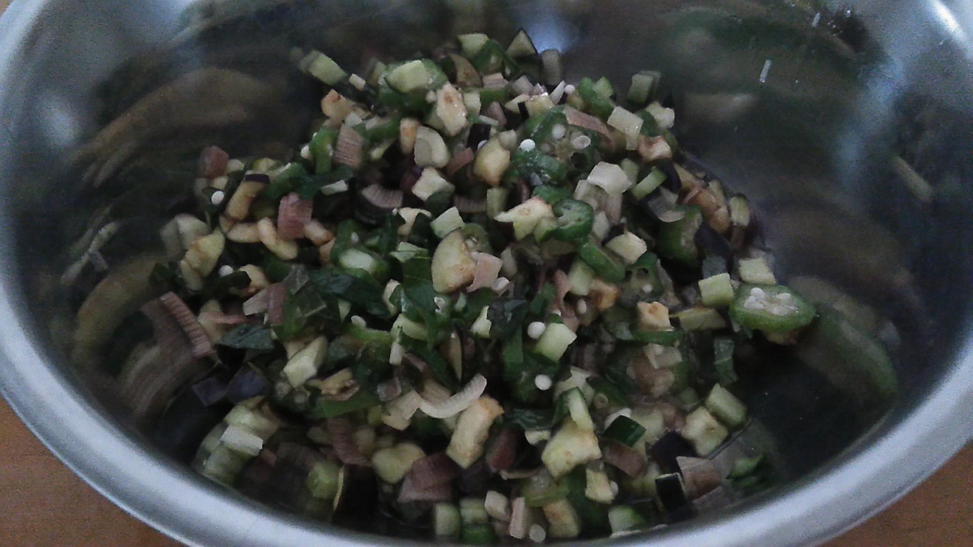 なす きゅうり みょうが だし めんつゆ- ナスはみじん切りにし、水にさらして水気を絞っておく。 オクラは茹でてから輪切りにする。 きゅうり、みょうが、大葉はみじん切りにする。 ボウルに切った野菜とめんつゆ、水を1 なす・きゅうり・みょうがは、縦半分にカットして斜め薄切りにして、なす・きゅうりに塩を揉み込み、約5〜10分放置する 2 なす・きゅうりを水にさらして、その後水分を切っておく 3 材料